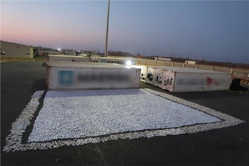 وأوضحت الوزارة، أن "الشحنة تتكون من نحو طنين من مخدر الحشيش، وأكثر من 8 ملايين قرص من عقار الكبتاغون المخدر، مخبأة داخل أقفاص التفاح".