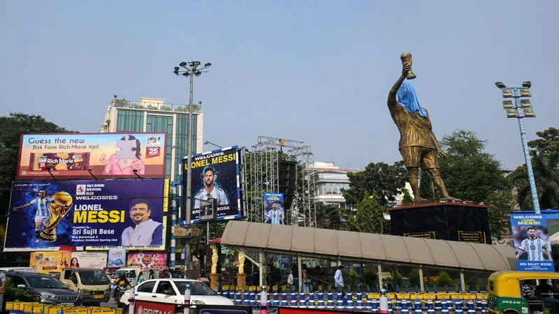 يعرض التمثال الحديدي في كالكوتا الذي يصوّر ميسي رافعاً كأس العالم، ضمن ما يُعرف بجولة «الأعظم في التاريخ»، التي ستشمل أربع مدن هندية، مع احتمال عقد لقاء مع رئيس الوزراء ناريندرا مودي.