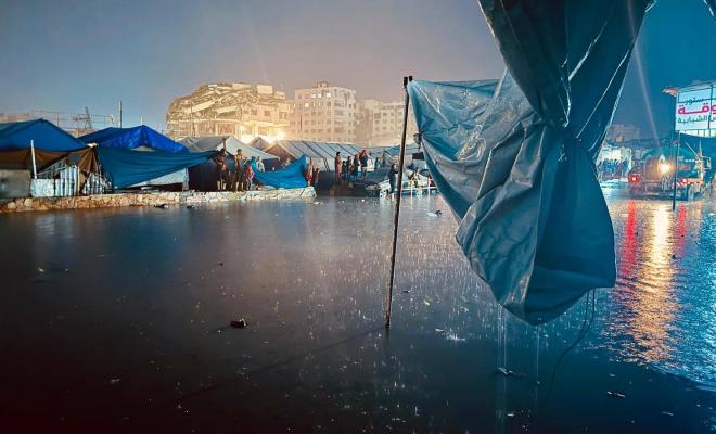 وفجر الثلاثاء، أغرقت مياه أمطار غزيرة أكبر مستشفى في قطاع غزة وآلافا من خيام النازحين الفلسطينيين، فيما تطايرت مئات منها جراء المنخفض العاصف.