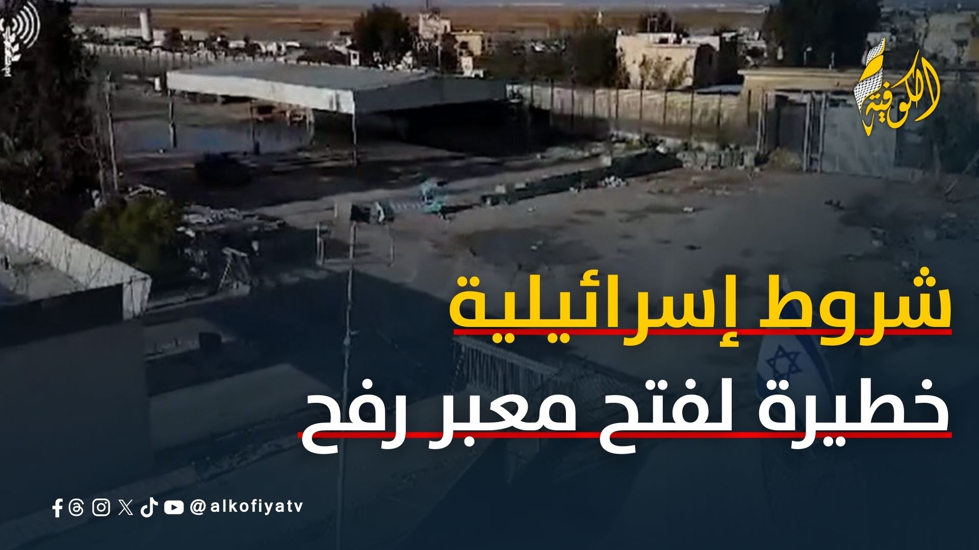 الكوفية أفادت قناة ريشت كان العبرية، مساء الخميس، بأنه تقرر إنشاء نقطة تفتيش أمنية إسرائيلية جديدة قرب معبر رفح ، الذي يُتوقع إعادة تشغيله قريبًا ضمن المرحلة الثانية من اتفاق وقف إطلاق النار.