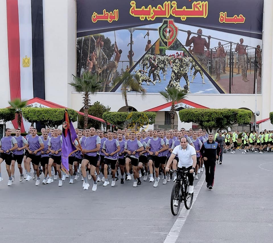 بالصور|| الرئيس المصري يشارك طلاب الكلية الحربية نشاطهم الرياضي