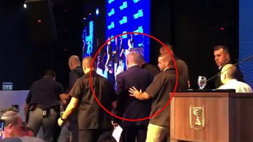 ووثق مقطع فيديو بثته القناة الثانية العبرية، لحظة خروج نتنياهو من القاعة التي كان يلقي فيها كلمة بمستوطنة أسدود.