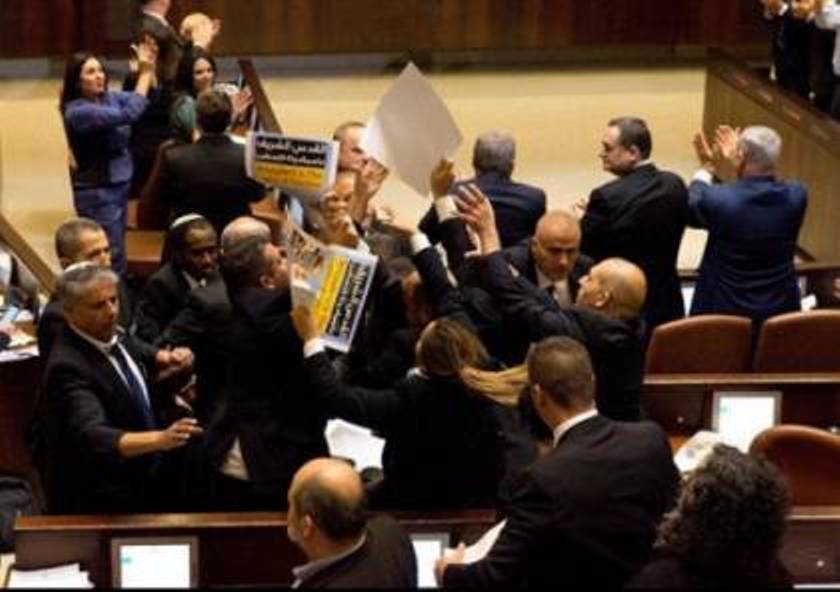 المشتركة تمزق القانون العنصري وتلقيه بوجه نتنياهو