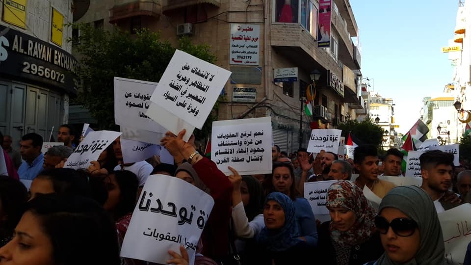مسيرة حاشدة في رام الله تطالب السلطة برفع العقوبات عن غزة