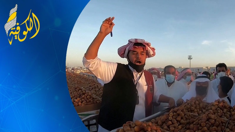 بوجوهٍ تغطيها الكمامات، يطلّ الدلّالون، ويبدأون بالنداء للفت انتباه أعلى المزايدين في مهرجان التمور الثمينة، حيث يصطف مشترون من أنحاء المملكة لشراء البلح، الذي يتم تصديره بعد ذلك إلى جميع أنحاء العالم.