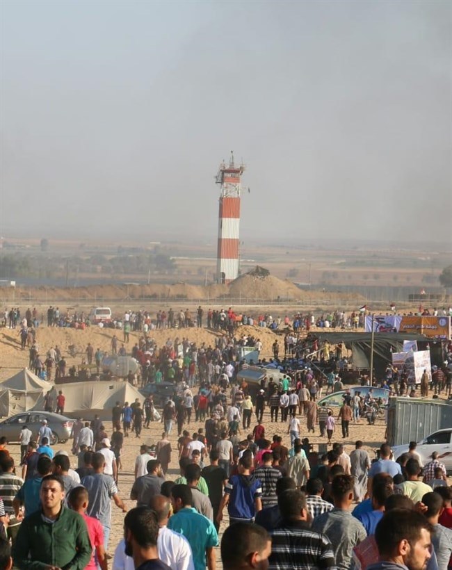 وبدأ الشبان المنتفضون بإشعال الإطارات المطاطية على طول الحدود الشرقية لقطاع غزة تزامنًا مع إطلاق قوات الاحتلال لوابل من قنابل الغاز والرصاص الحي باتجاه المتظاهرين.