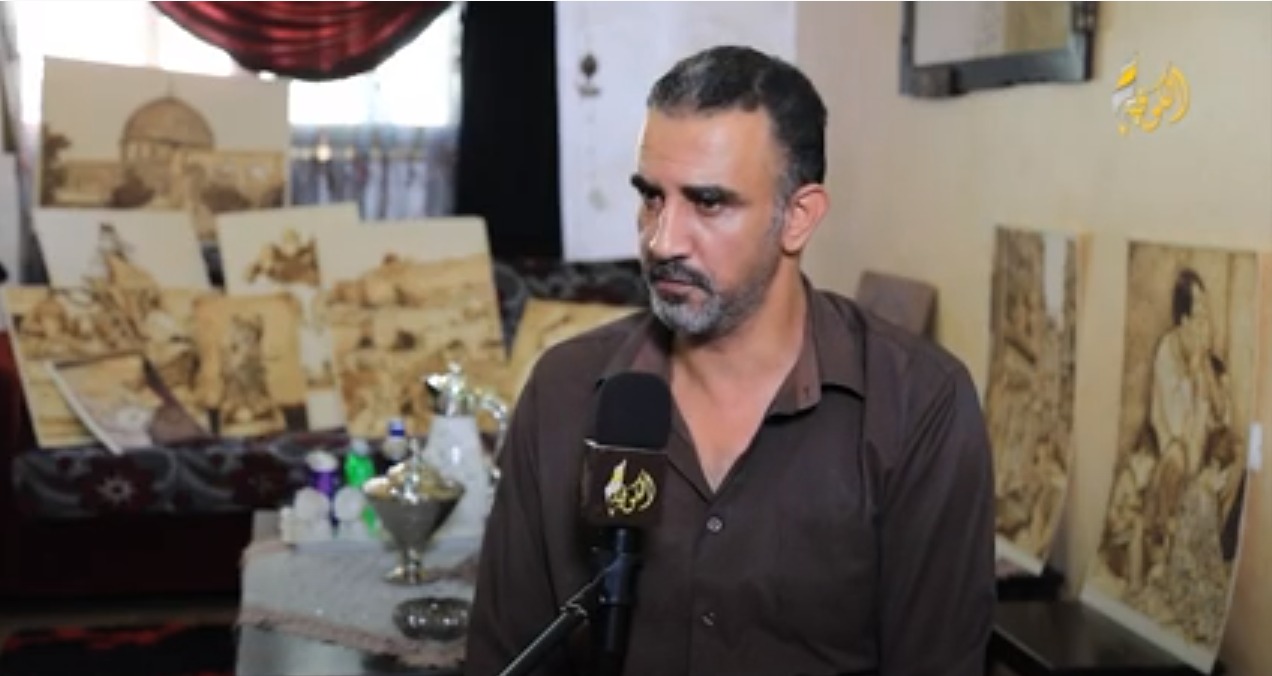 خاص بالفيديو|| ناجي نصر.. فنان فلسطيني يتحدى إعاقته بـ"حرق الخشب"
