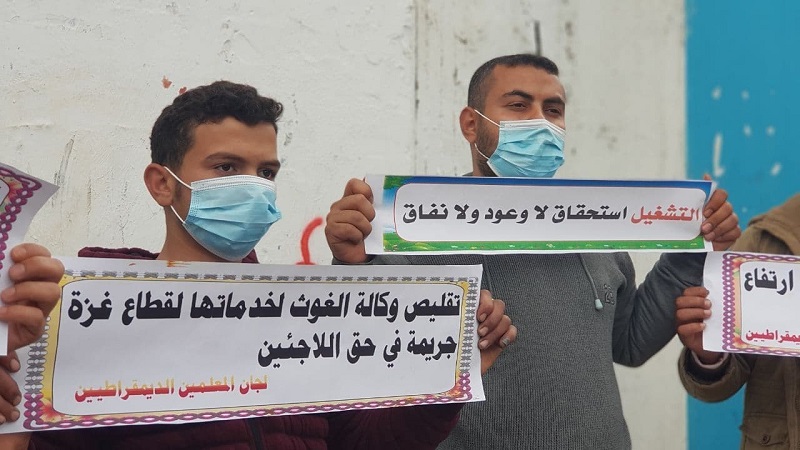 بالصور|| اعتصام أمام مقر "أونروا" في خانيونس للمطالبة بتشغيل الخريجين
